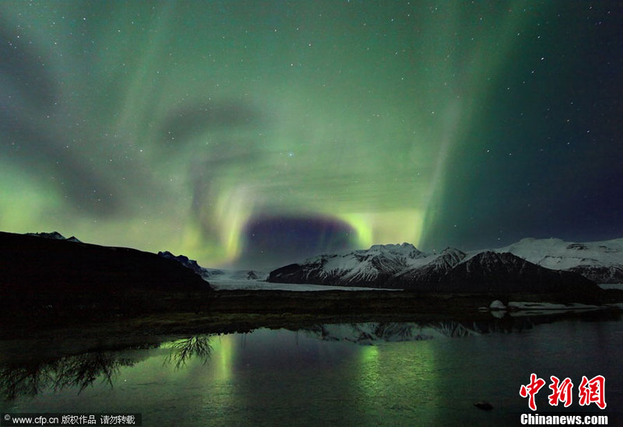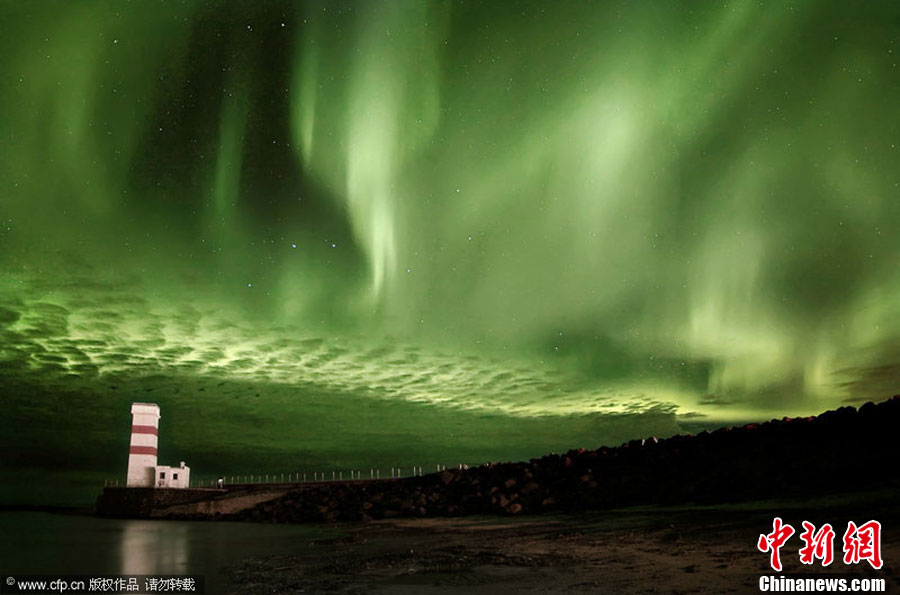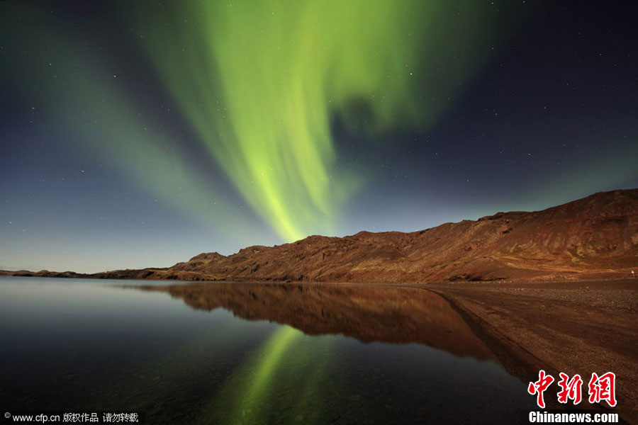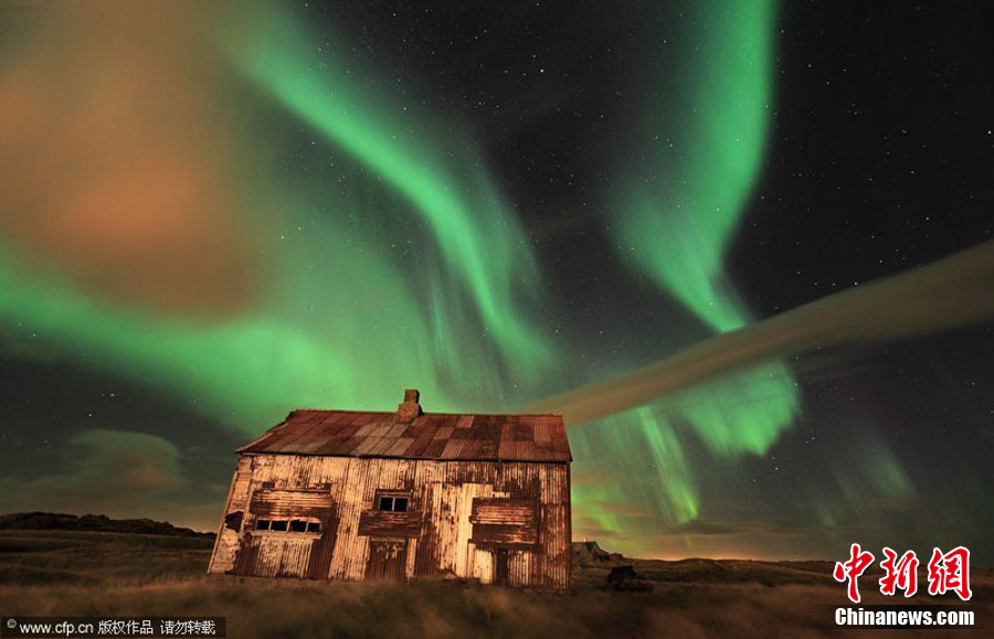 2010年11月,冰島攝影師Orvar Thorgiersson拍攝的美麗北極光。北極光一般遵循持續11年的“太陽活動周期”,在這個周期內,北極光出現頻率先是達到一個峰值,接著逐漸減少,直至最低谷。這是一個不斷循環往復的過程。有研究稱,北極光至2012年將達到一個周期的峰值,Orvar Thorgiersson用鏡頭記錄下2007年至今的北極光變化過程。barcroftmedia 圖片來源:CFP視覺中國