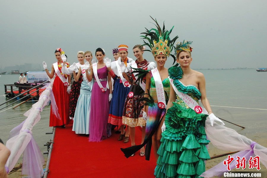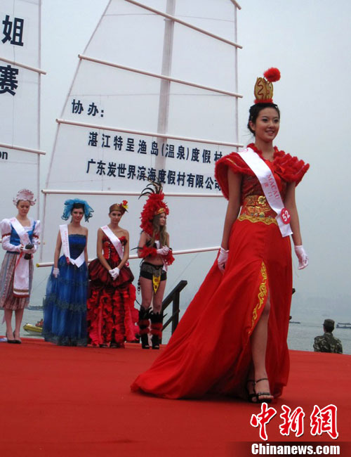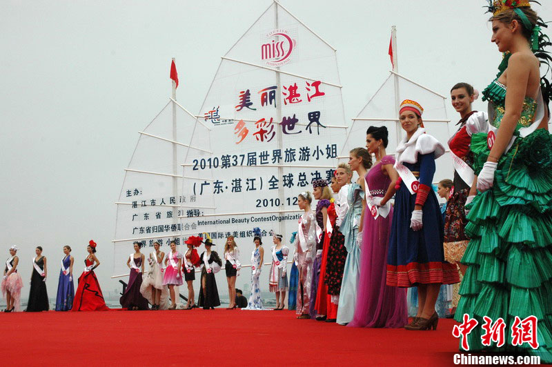 12日上午,第37屆世界旅游小姐全球總決賽開幕式在廣東湛江舉行;顒悠陂g,來自各個國家和地區的53名旅游佳麗,將進行巡游、展演及泳裝、民族服裝、晚裝表演、才藝問答等環節比賽,最后評出世界旅游小姐全球總決賽冠、亞、季軍。中新社記者 梁盛 攝
