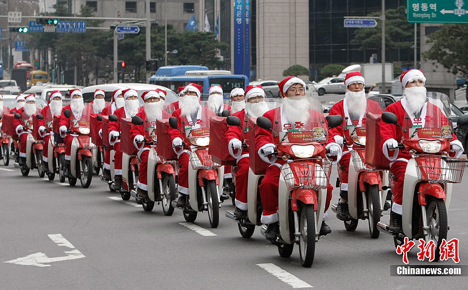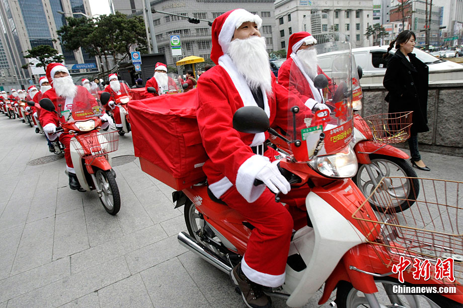 韓國郵遞員變身“圣誕老人”送郵件
