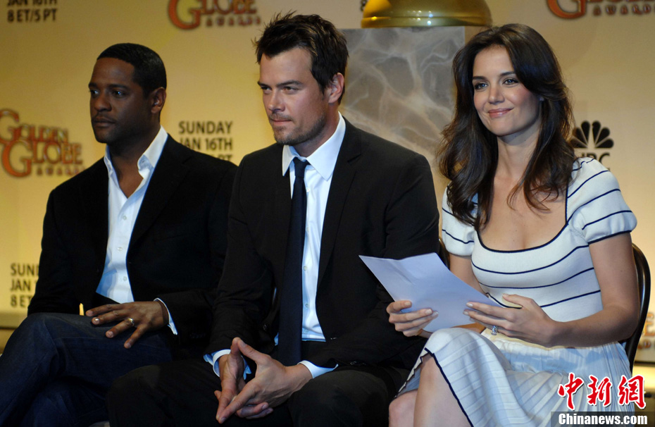 當地時間12月14日凌晨,第68屆美國金球獎提名名單揭曉。《國王的演說》、《社群網戰》和《斗士》領跑電影類獎項提名。圖為好萊塢明星、湯姆·克魯斯的妻子凱蒂·霍爾姆斯宣讀提名名單。中新社發 張煒 攝
