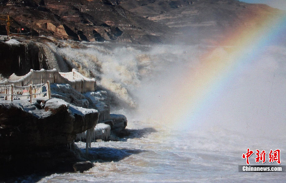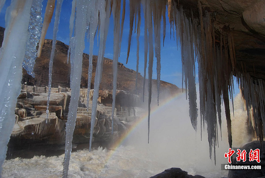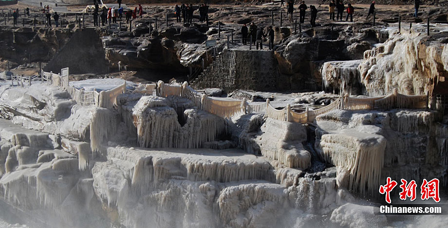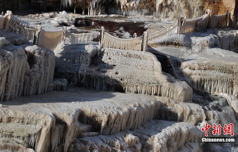 山西壺口瀑布出現冰掛美景
