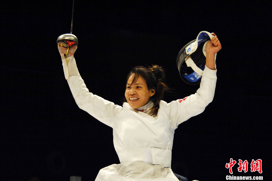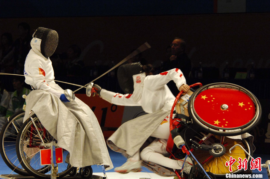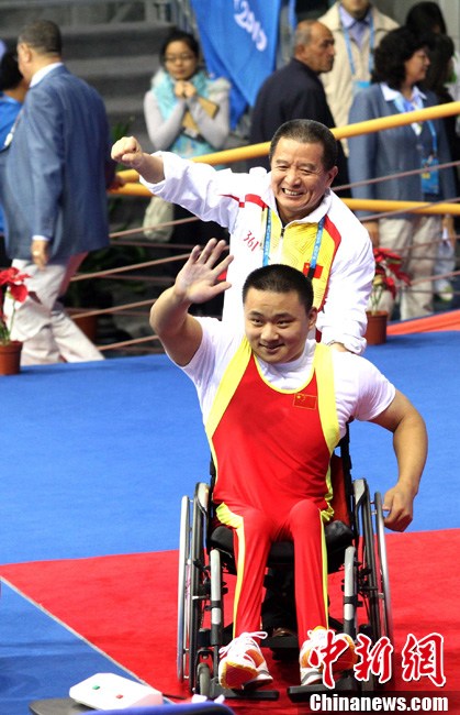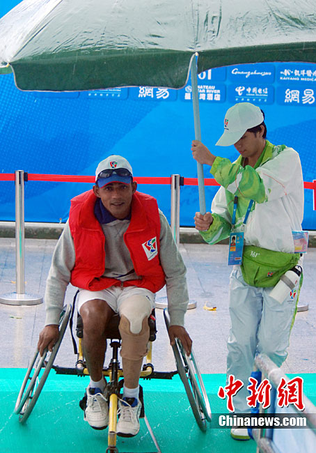 亞殘運會志愿者雨天為運動員撐傘護航