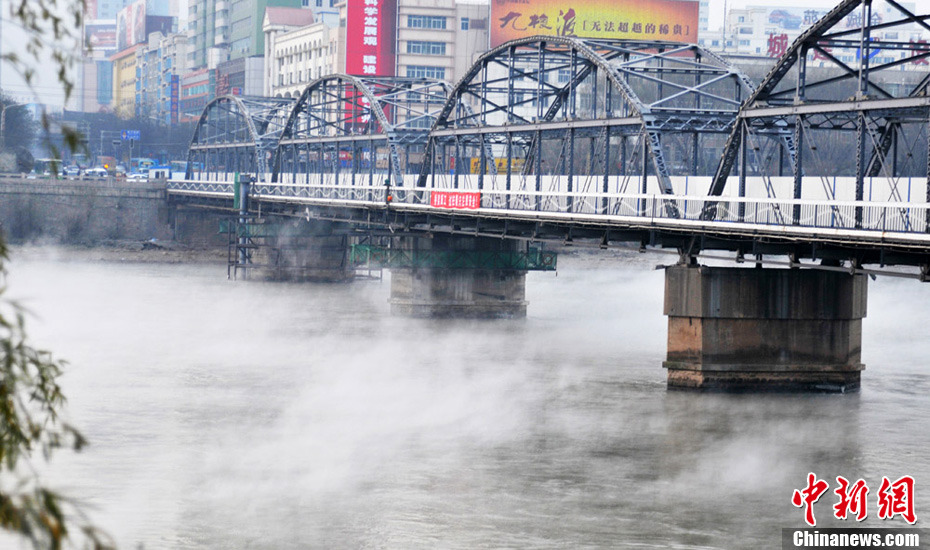 12月16日晨,黃河蘭州段出現河霧景觀。當日7時,蘭州市最低氣溫降至零下15℃。 楊艷敏 攝