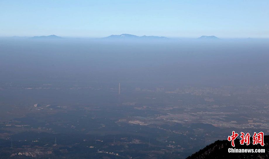 大雪過后,江西贛北地區晴空萬里。12月18日13時30分許,廬山小天池的剪刀峽口方向,出現了海市蜃樓景觀,持續時間長達五六個小時。崔小毅 攝