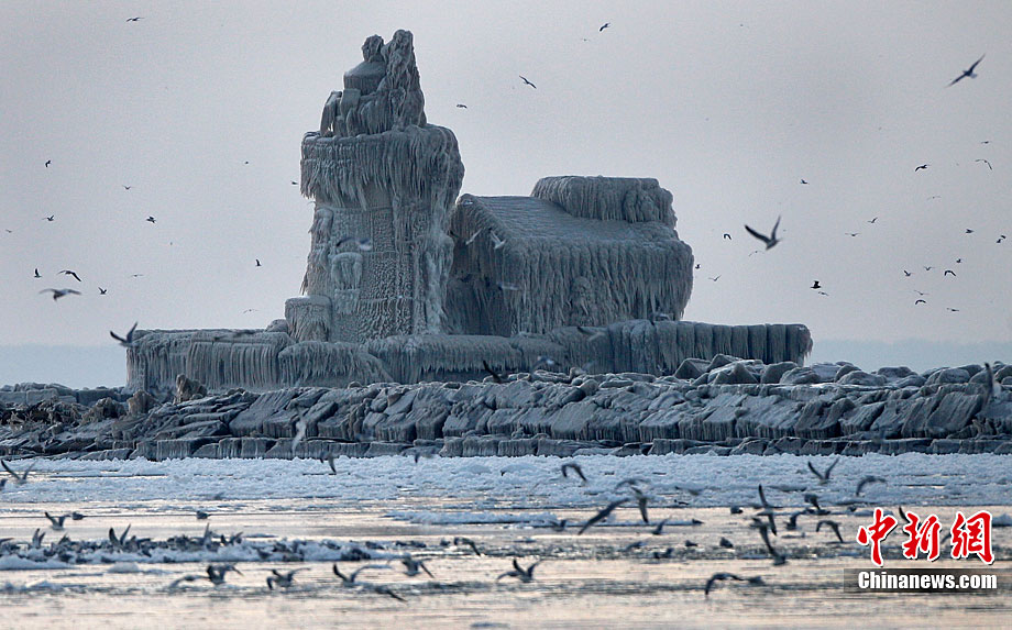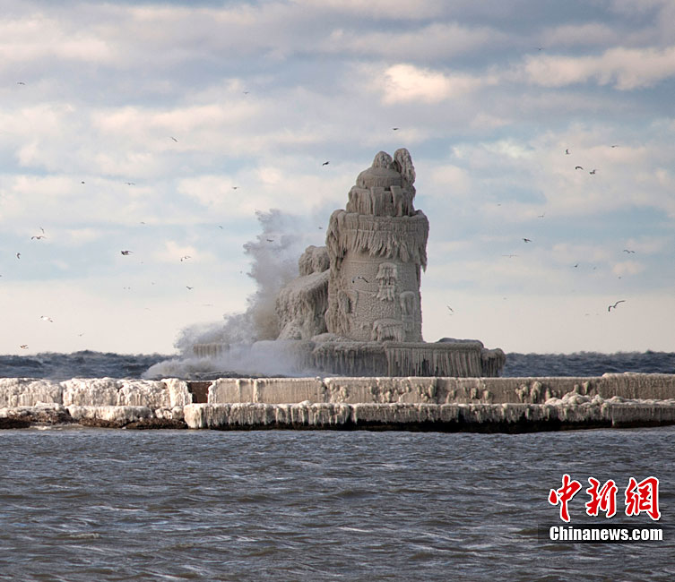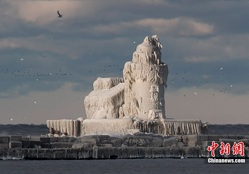 受暴風雪影響,一座位于美國俄亥俄州伊利湖克利夫蘭港的燈塔近日完全被冰層覆蓋,從遠處望去,仿佛一座冰雪雕刻的中世紀古堡。
