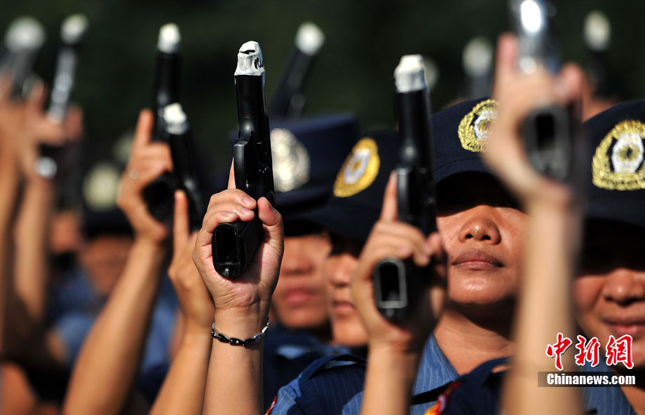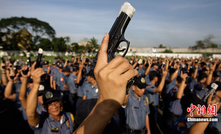 12月27日,菲律賓首都馬尼拉北部的奎松市郊區(qū),菲律賓警察正在舉行封槍儀式。菲律賓警方每年都會在新年來臨之際舉行封槍儀式,其目的是為了防止警務(wù)人員在慶祝新年時胡亂開槍。