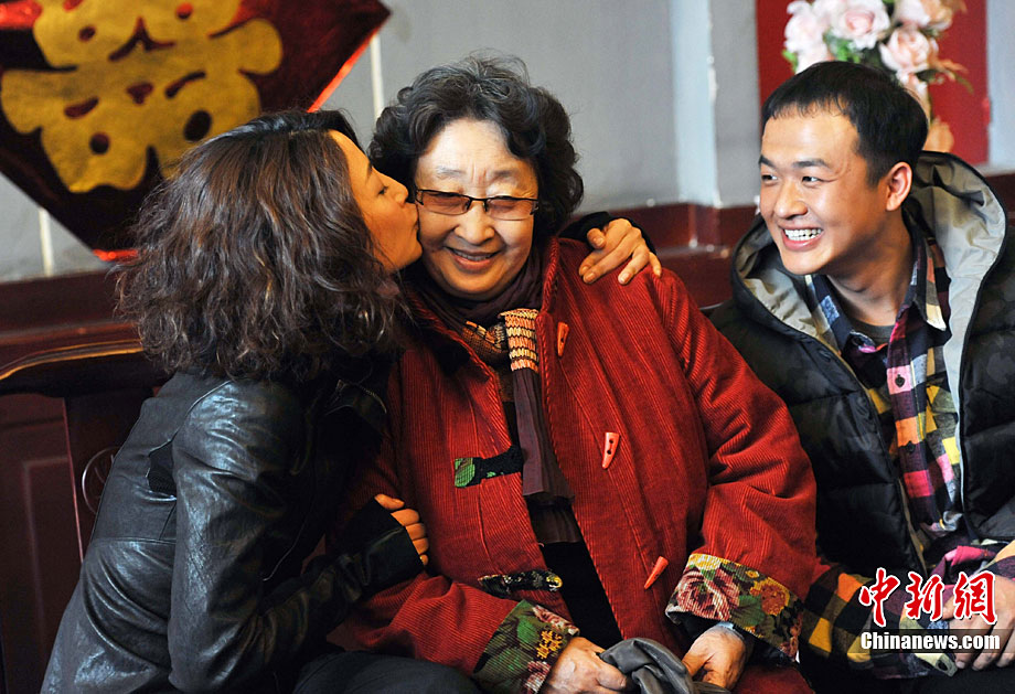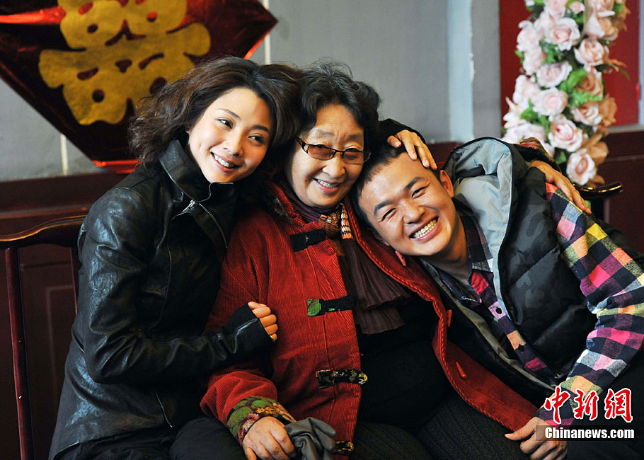 12月27日,電視劇《我和老媽一起嫁》正在北京熱拍,該劇由知名導演余丁執導,彭玉、殷桃、張洪杰擔綱主演。劇中,老媽(彭玉飾)黃昏戀的對象居然是女兒鐘情(殷桃飾)的老同學的父親,麻辣母女婚嫁撞車上演了一出溫暖、幽默的家庭喜劇。中新社記者 李學仕 攝