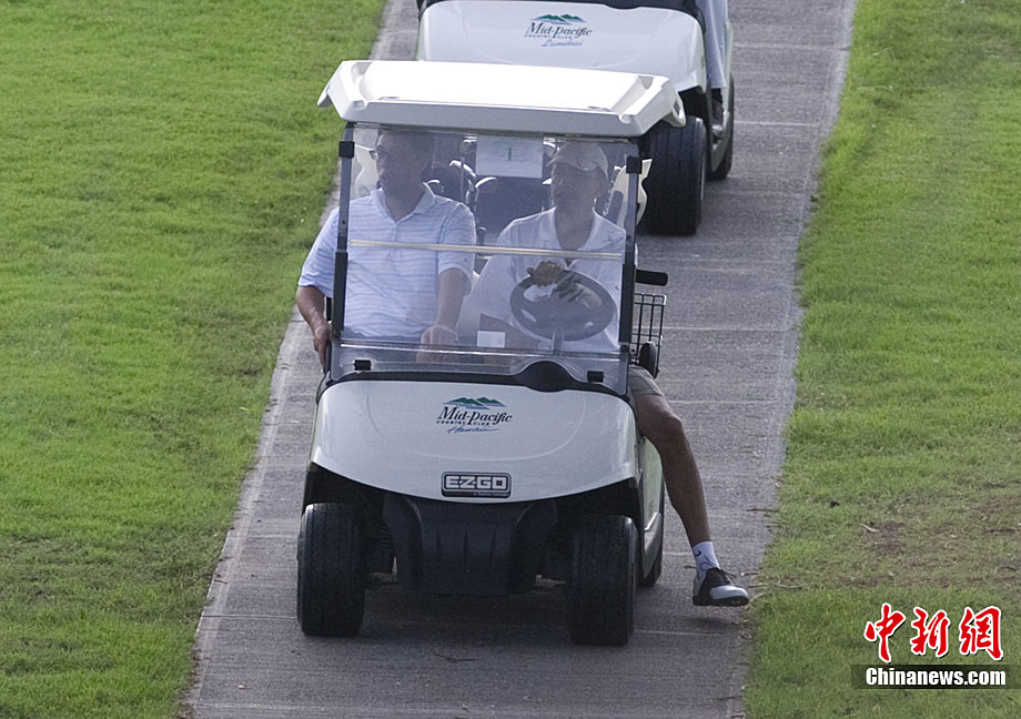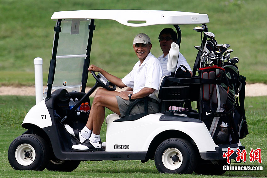當地時間12月28日,美國總統奧巴馬在夏威夷度假。他在高爾夫球場上不但打球,還充當起了司機大秀了一把車技。