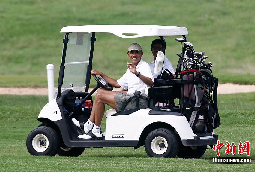 奧巴馬高爾夫球場享假期 當司機大秀車技