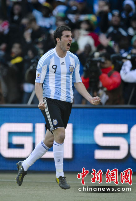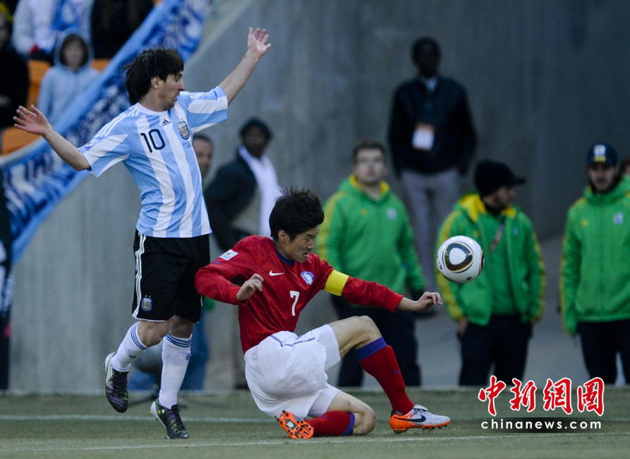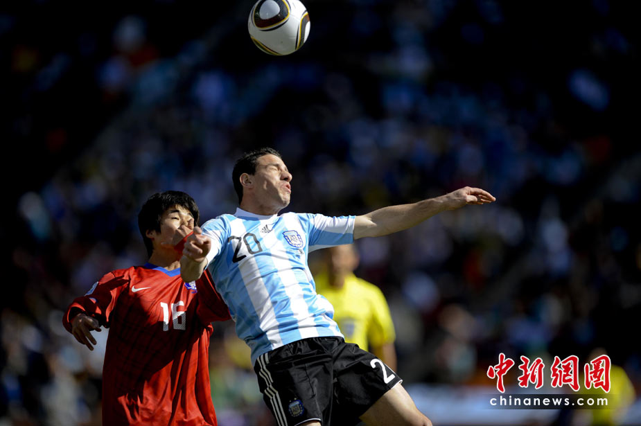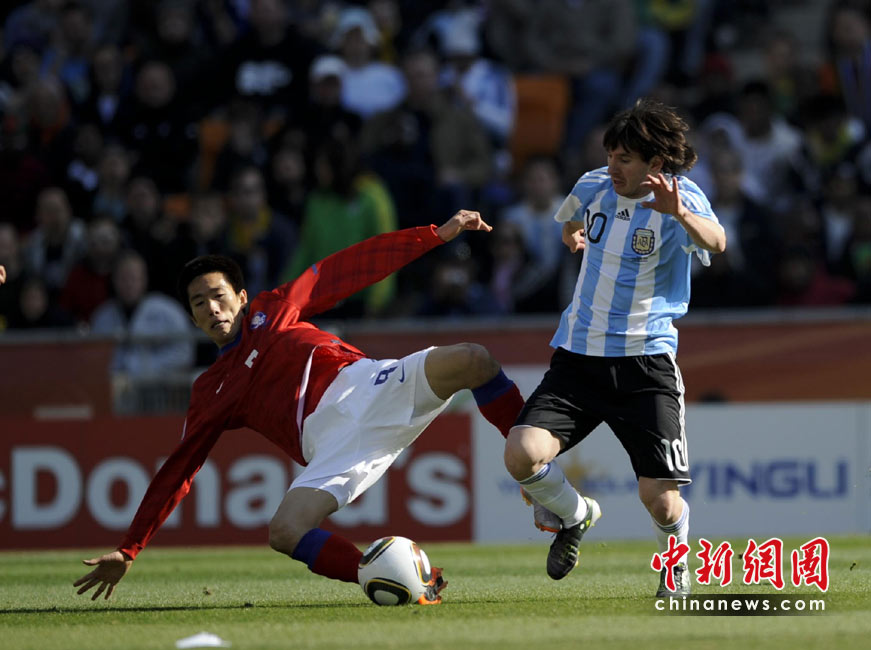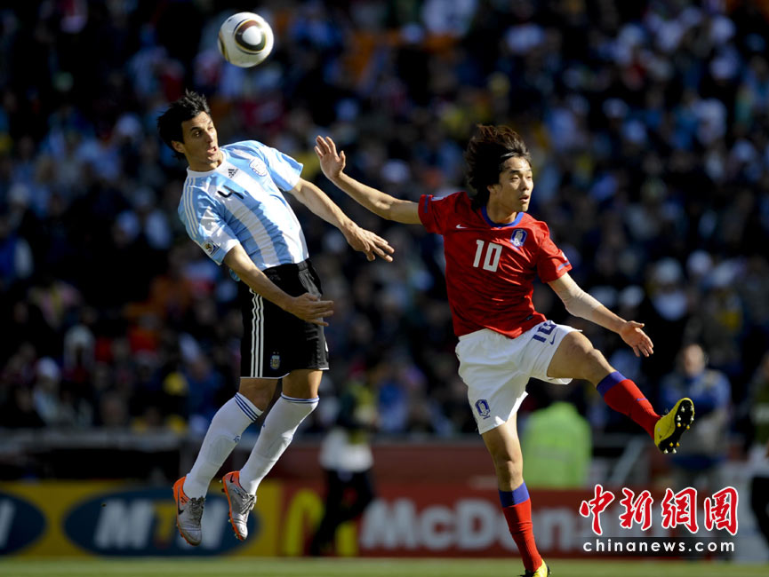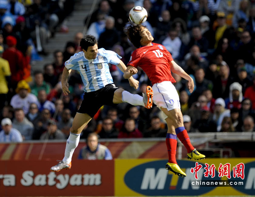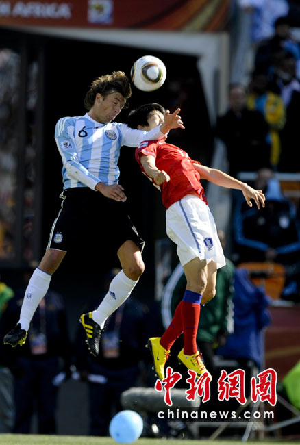 北京時間6月17日19點30分,2010年南非世界杯B組第二輪的首場比賽打響,由兩屆世界杯冠軍得主阿根廷隊迎戰(zhàn)亞洲“太極虎”韓國隊。中新社記者 廖攀 攝