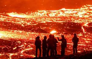 民眾圍觀冰島火山
