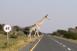 白色長頸鹿過馬路