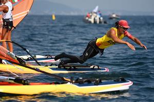 盧云秀躍入水中慶祝奪冠