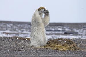 北極熊頭戴海藻當假發