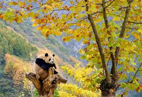 大熊貓樂享金秋美景