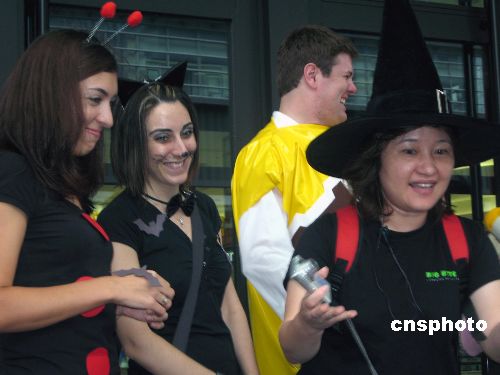 西方社會傳統的萬圣節將至,10月30日,在臺北市著名百貨公司新光三越店門口,時尚一族提前秀起了“鬼臉”。中新社發 王林 攝