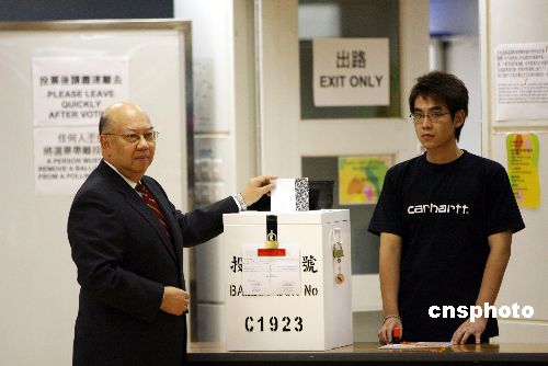 十一月十四日,香港選舉管理委員會(huì)主席彭鍵基法官巡視設(shè)于九龍公園體育館的模擬投票站。香港區(qū)議會(huì)選舉將于十一月十八日舉行,全港共設(shè)立了四個(gè)模擬投票站,讓選民預(yù)先熟習(xí)有關(guān)的投票程序。中新社發(fā) 武仲林 攝