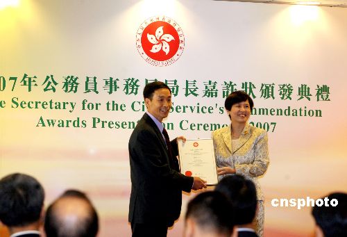 十一月十五日,香港舉行公務員事務局局長嘉許狀頒發典禮,為來自三十八個局及部門的七十五名優秀公務員頒發嘉許狀,表揚他們的杰出表現。中新社發 王麗南 攝