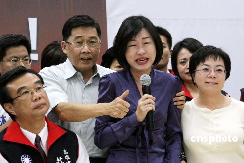 11月16日,高雄市長選舉官司在當地二審定讞。代表中國國民黨的候選人黃俊英(中)在選舉無效和當選無效兩項訴訟中均遭判敗訴。民進黨的陳菊在去年12月9日勝出擔任市長后,今次獲承辦法官支持繼續擔任市長。今年6月15日,該官司一審曾判,選舉有效,但陳菊當選無效。圖為在競選總部記者會上,辯護律師傷心落淚,黃俊英趨前安慰。中新社發 黃少華 攝