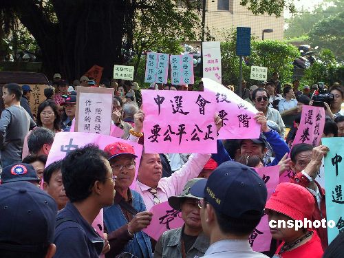 臺灣“中選會”委員會議十一月十六日晚表決確定,明年“立委”選舉合并兩項“公投”舉行,將采“分桌領票、一階段投、圈票方式”進行,投錯票匭選票屬有效票。圖為當天下午臺灣民眾到“中選會”所在辦公大樓下表達訴求,希望選舉能公平公正進行。據(jù)了解,在“中選會”的一項意見調(diào)查中,臺灣二十五縣市選委會當中的多數(shù)支持“二階段領、投票”模式。中新社發(fā) 劉舒凌 攝