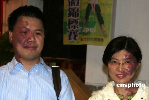 十二月五日,LG杯世界圍棋賽冠軍、臺(tái)灣“紅面棋王”周俊勛應(yīng)邀出席臺(tái)北市學(xué)生圍棋團(tuán)體錦標(biāo)賽,現(xiàn)場(chǎng)一位“紅面”女子與其合影留念,相映成趣。中新社發(fā) 董會(huì)峰 攝