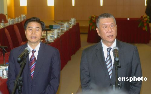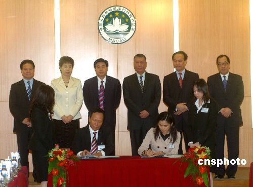 十二月十三日,澳門特別行政區政府與廣東省人民政府在澳門政府總部分別簽署了《粵澳供水合作框架協議》、《粵澳緊急醫療和消防救援合作機制協定》、《粵澳食品安全工作交流與合作框架協議》和《粵澳中醫藥產業合作框架協議》四項合作項目協議書。澳門特首何厚鏵、廣東省省長黃華華等嘉賓見證簽字儀式。中新社發 史利 攝
