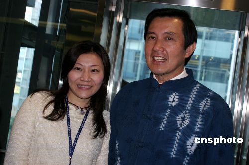 前臺北市長馬英九特別費案,將于二十八日二審宣判。馬英九重申,他對他的清白有信心,對法院的公正有期待。圖為十二月二十七日,馬英九在出席一個公開活動后,與臺北縣一名女員工合影留念。中新社發(fā) 董會峰 攝