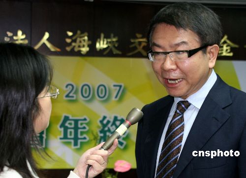 十二月二十七日,臺灣海基會在臺北舉行二00七年終記者會。圖為;鶗麻L洪奇昌會后接受記者采訪。中新社發 董會峰 攝