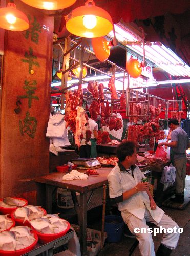 一月十六日,香港最大的鮮活冷凍食品進口商及分銷商五豐行表示,內地多個省份下大雪,供港活牛主要公路關閉,甚至嚴重堵塞,因此活牛不能供港,明日市面將會無鮮牛肉供應。有肉檔主表示,牛肉來貨不足,零售價上升近一成,生意十分難做。中新社發 陳伊敏 攝