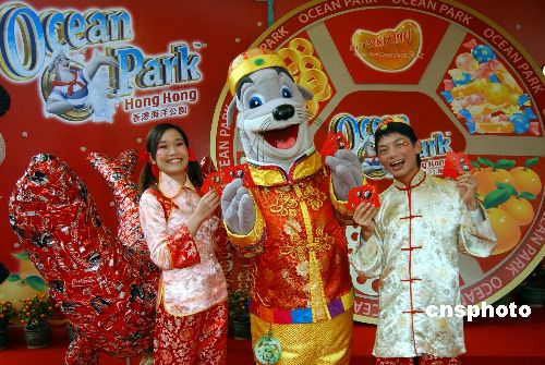 一月十七日,香港海洋公園吉祥物威威獅令以新春唐衫裝扮大派新年利是,宣傳賀歲活動。當日,該公園宣布由二月二日至十七日農(nóng)歷期間舉辦“大團拜”,上演“冰上百老匯”、“舞龍大匯演”等迎鼠接福活動。中新社發(fā) 蔡蔓莉 攝