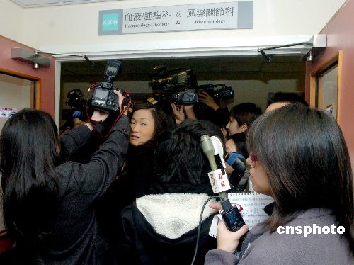 二月十九日上午,香港藝人“肥肥”沈殿霞在香港瑪麗醫院病逝,終年六十一歲。傳媒記者在香港瑪麗醫院K座大樓守候。中新社發 鄧慶樂 攝