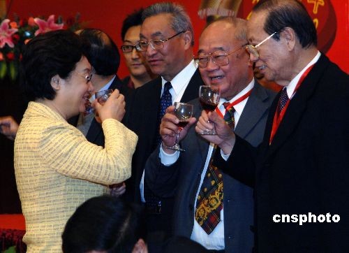 二月二十日晚,中國國僑辦主任李海峰(左一)在廈門與前來參加“海峽西岸鬧元宵,全球華人盼團圓”活動的海外華人華僑及港澳臺同胞共話鄉(xiāng)誼。中新社發(fā) 王東明 攝