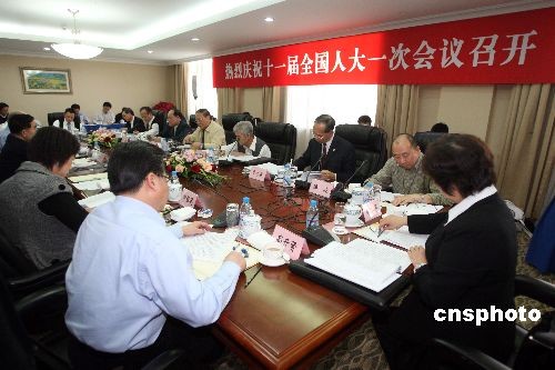 3月5日,出席十一屆全國人大一次會(huì)議的澳門代表團(tuán)舉行全體會(huì)議,審議政府工作報(bào)告。中新社發(fā) 張宇 攝