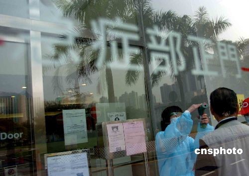 三月十一日,香港屯門醫院為進入急癥室者事前須探熱及洗手消毒。屯門醫院近日成為流行性感冒壓力下的重災區,因應求診人數增加及流感高峰期,在急癥室實施發燒病人分流措施,預防流感擴散。中新社發 譚達明 攝