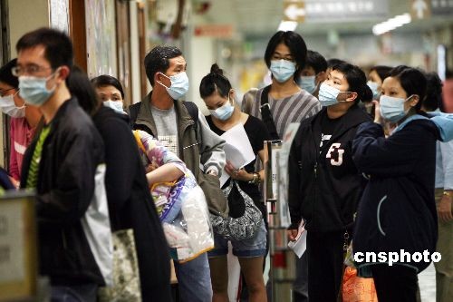 三月十三日,香港屯門醫院內前來看病的人絡繹不絕。當日,香港全部小學、幼兒幼稚園和特殊學校停課,以應對流感,各大醫院更是嚴陣以待,避免流感大流行。中新社發 武仲林 攝