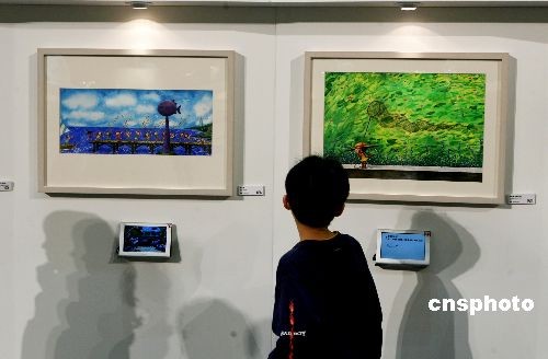 三月二十一日,《幾米創作十年展》亞洲巡回展在香港揭幕。幾米是臺灣著名繪本畫家,其作品曾被翻譯成數十種語言,在全球暢銷,當中更有《地下鐵》、《向左走向右走》等被改編成電影。中新社發 武仲林 攝