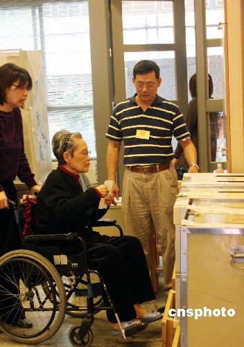 二00八臺灣地區領導人選舉投票舉行,圖為民眾在臺北一個投票所投票。此次大選,臺灣共有選舉人數17321606人。中新社發 黃少華 攝