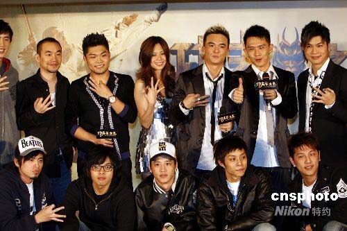 4月24日,《功夫之王》在臺灣首映,兩位男主角成龍、李連杰未能到場參加,由主題歌曲《預感》的制作人李玖哲和片尾曲《HERO》演唱組合“三角COOL”成員一起為臺北首映式捧場。中新社發 杜洋 攝