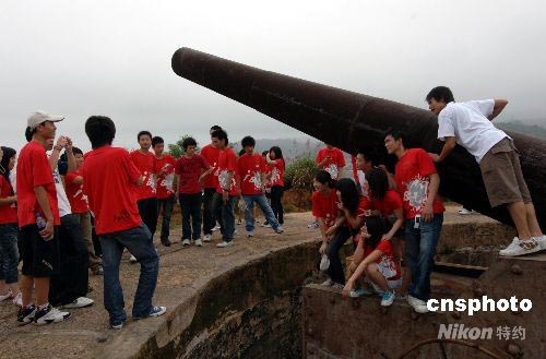 5月30日,前來參加兩岸中學生夏令營的馬祖高級中學師生正在參觀長門炮臺。長門炮臺是目前中國保留下來的最古老的最大的炮臺,它始建于明崇禎年間,位于連江縣館頭鎮長門村電光山上,歷經了數次戰火洗禮,扼守閩江口第一要隘。中新社發 王東明 攝