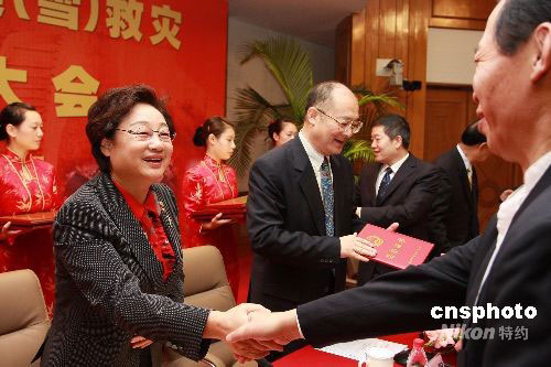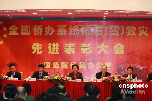 9月28日,國(guó)務(wù)院僑辦在北京召開僑辦系統(tǒng)抗震(雪)救災(zāi)先進(jìn)表彰電視電話會(huì)議,對(duì)全國(guó)僑辦系統(tǒng)在抗震(雪)救災(zāi)斗爭(zhēng)中表現(xiàn)突出的50個(gè)先進(jìn)集體和100名先進(jìn)個(gè)人予以表彰。中新社發(fā) 鄭雄增 攝