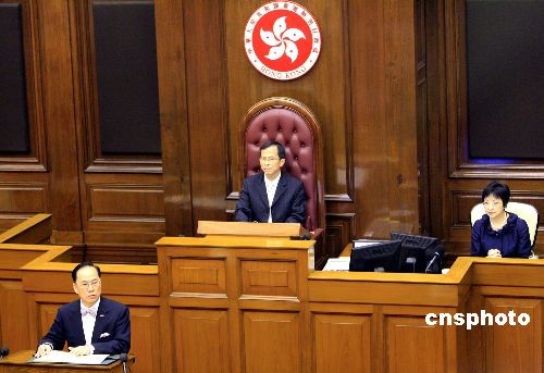 十月十五日,香港行政長(zhǎng)官曾蔭權(quán),向立法會(huì)發(fā)表二零零八至零九年施政報(bào)告。中新社發(fā) 張勤 攝