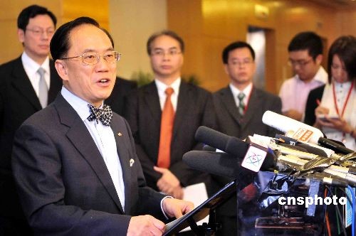 十月二十八日,香港特區行政長官曾蔭權在行政會議后會見傳媒,宣布委任經濟機遇委員會十名成員,由他出任主席,財政司長曾俊華出任副主席。中新社發 譚達明 攝