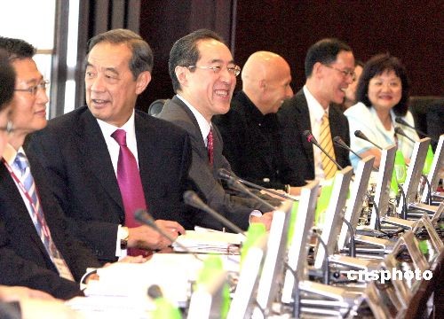 十月二十八日,香港西九文化區(qū)管理局董事局在國金中心舉行首次會(huì)議,討論招聘行政總裁、成立秘書處等事宜。西九文化區(qū)管理局董事局主席、政務(wù)司司長唐英年(左三)等與會(huì)。中新社發(fā) 張勤 攝