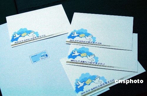 12月15日,臺(tái)灣“中華郵政”發(fā)行海峽兩岸通郵紀(jì)念郵票和首日封。郵票圖案以和平鴿送信為主圖,背景襯以藍(lán)天白云,象征兩岸“為民興利、兩岸和平”的共同目標(biāo)。中新社發(fā) 周兆軍 攝