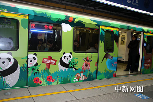 12月26日,臺北市啟動的大熊貓彩繪車在地鐵中穿梭。 作者 陳立宇