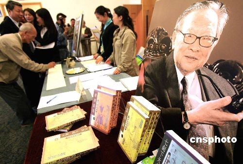 二月十六日,為緬懷上月底病逝的武俠小說宗師梁羽生,香港《大公報》和天地圖書在香港中央圖書館舉辦座談會。著名武俠小說作家金庸、武俠小說研究專家兼教授鄺健行、電影導演張鑫炎、對聯專家楊瑞生,天地圖書副總編輯孫立川等就梁羽生在當代文學、詩詞、楹聯等方面的造詣和成就以及生平逸事趣聞,與其著作愛好者和公眾座談分享。圖為展出的梁羽生部分作品。中新社發 張勤 攝