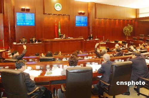 澳門立法會二月二十五日下午經細則性討論后,高票通過了《維護國家安全法》。圖為法案通過后,議員們紛紛舉手發言。中新社發 畢永光 攝