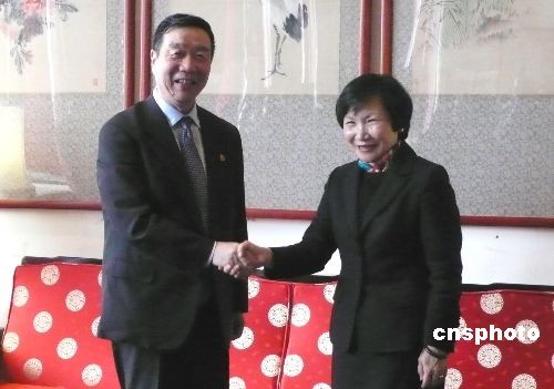 北京故宮博物院院長鄭欣淼(左)三月一日率領十人訪問團抵達臺北,展開對臺北故宮為期四天的回訪。圖為鄭欣淼與臺北故宮博物院院長周功鑫(右)在記者會上。兩人都表示:兩岸故宮合作能擷長補短、互惠互補,一加一的效果將遠大于二。中新社發 路梅 攝