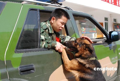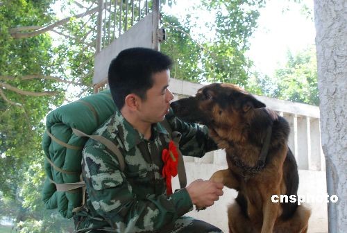 十一月二十四日,武警福建總隊(duì)直屬支隊(duì)的訓(xùn)犬員張世均與息息相處五年的無(wú)言戰(zhàn)友“飛虎”依依惜別。又到老兵退伍的日子,在武警福建總隊(duì)服役期滿(mǎn)的三千多名老兵,開(kāi)始踏上返鄉(xiāng)的路程。中新社發(fā) 曾朝群 攝
