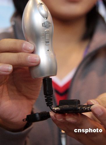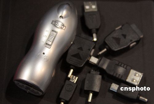 10月16日,USB移動電源亮相北京第二屆國際網絡安全技術與應用展。該USB移動電源外形酷似小手電筒,含電池的重量是約為80g,當用戶在外出遠行的時候,能夠將干電池作為電源為手機、相機電池等應急充電。中新社發 吳芒子 攝